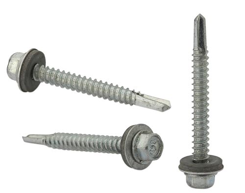 These screws create threads as they drive into the material. They are used in panel connections and are made from steel alloys with coatings that prevent corrosion. The head features a silicone seal to prevent slippage.